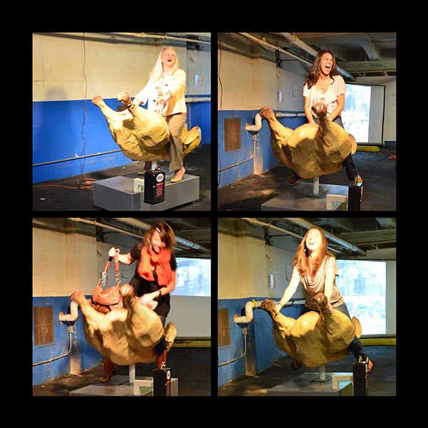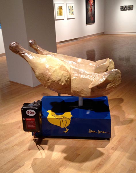 Have fun with sculpture riding these kiddie-ride-style sculptures.