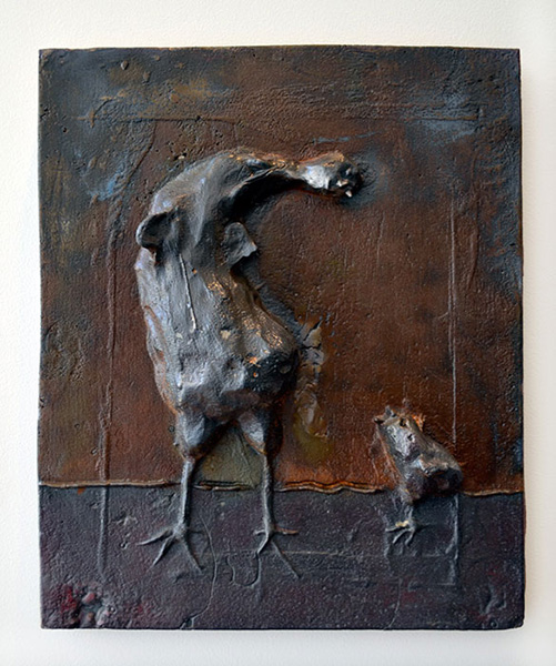 Sculpture, installation, prints, chickens.