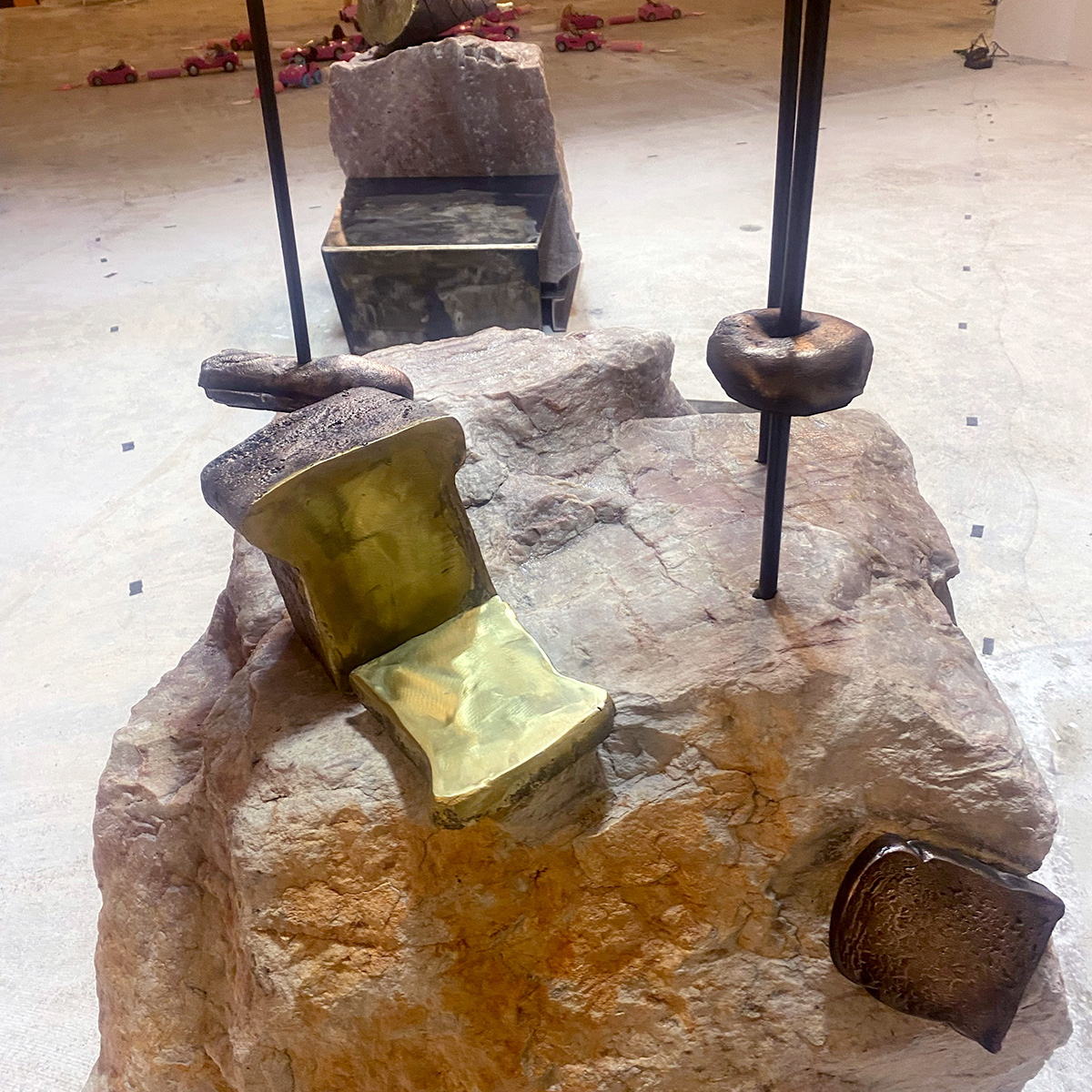 Composed of Ham Seat and Bread Seat; granite, bronze, steel; 2024